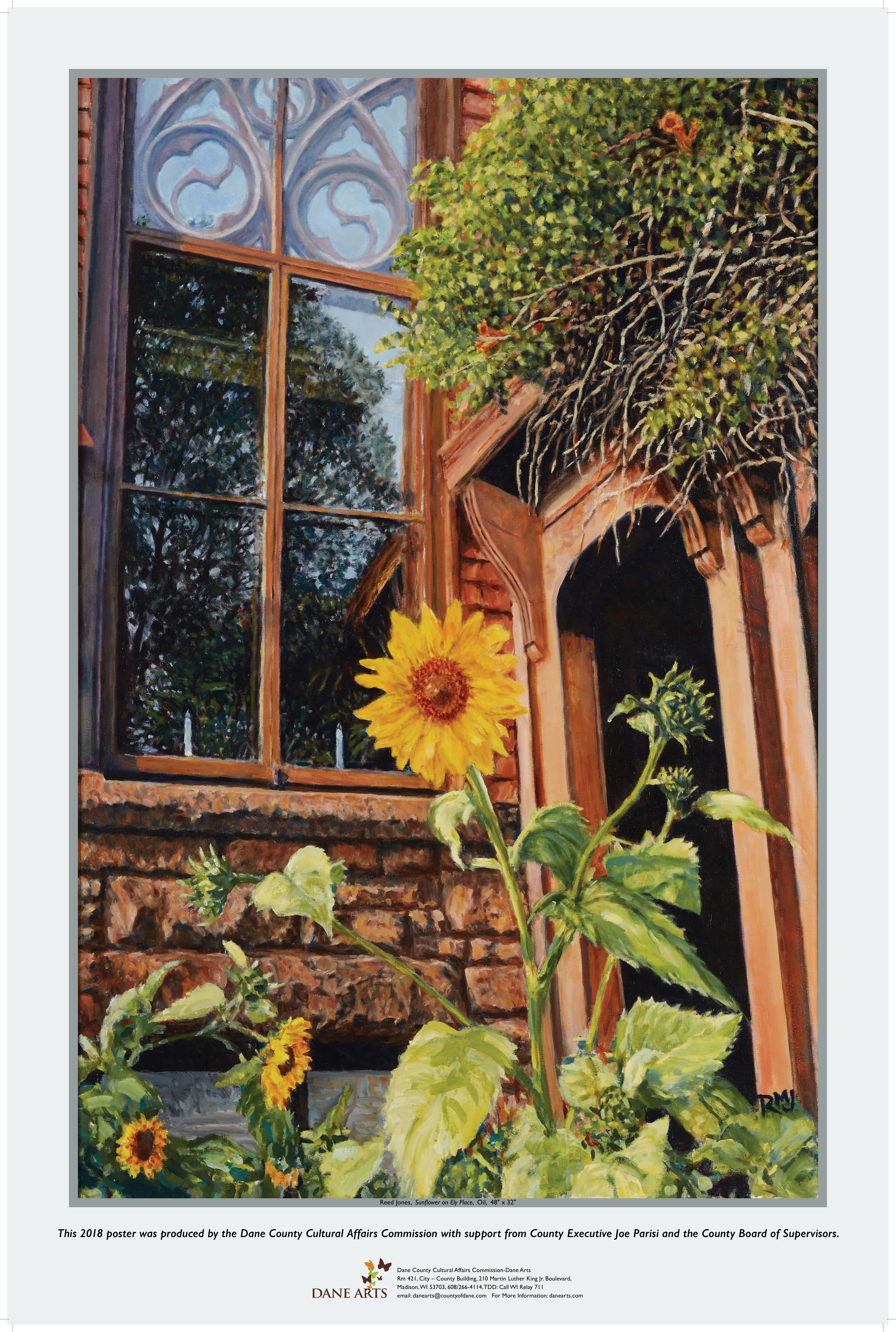 Dane County Executive Parisi announced today that the 2018 Art Poster from Cultural Affairs - Dane Arts, is now available at locations throughout Dane County. This year’s poster features a beautiful oil painting titled, "Sunflower on Ely Place", by Dane County artist, Reed M. Jones.