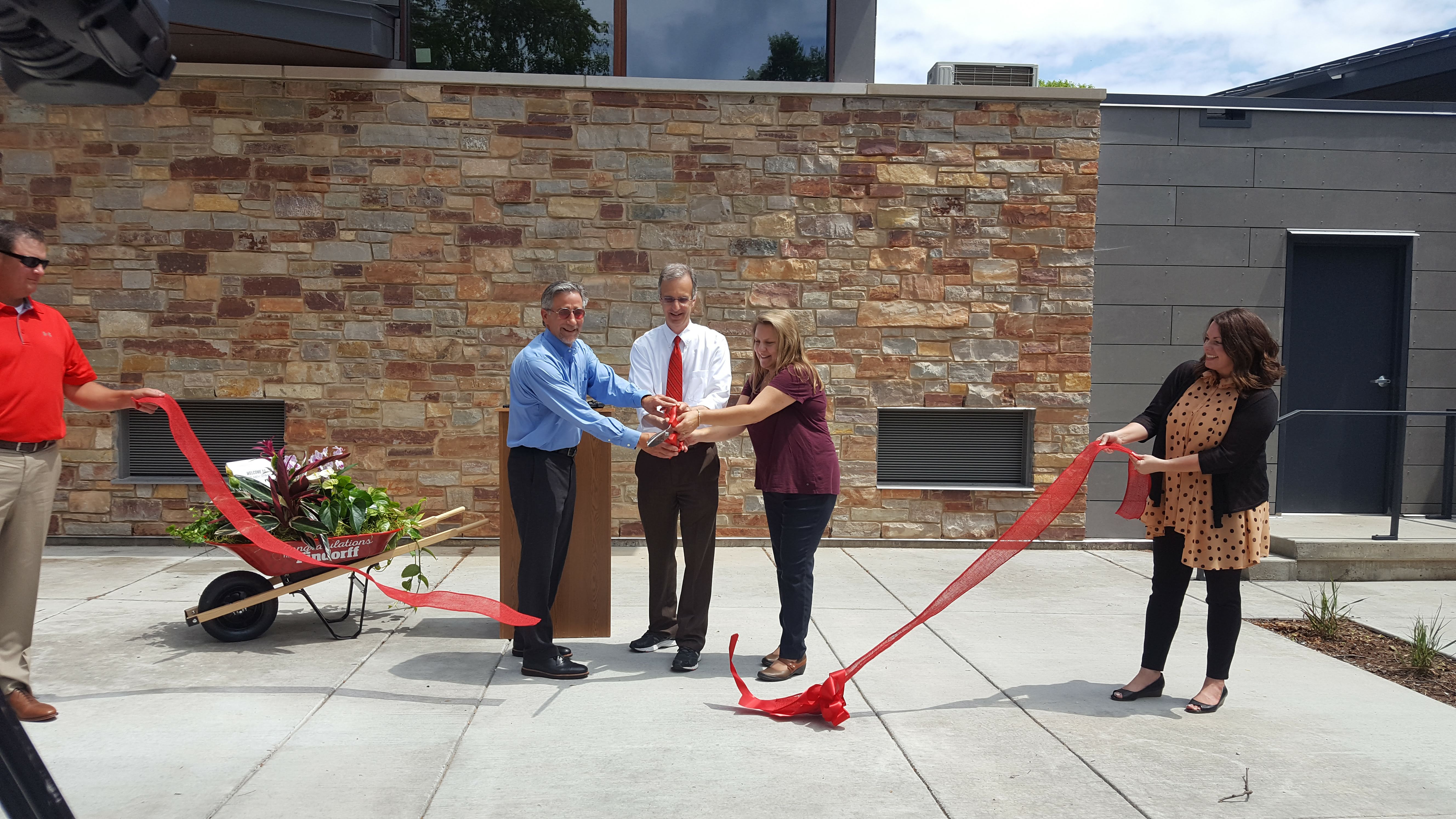 Today Dane County Executive Parisi cut the ribbon for a new facility at the Henry Vilas Zoo including a concession area and bathrooms. The $1.6 million dollar project funded by the County replaced the building to include more bathrooms, provide a family and breastfeeding area, and feature more accessible stalls. The new facility will include a concession area with a slide up window for sales of ice cream and a new outside seating area adjacent to the Flamingo Exhibit. The facility has LED lighting and other green features.