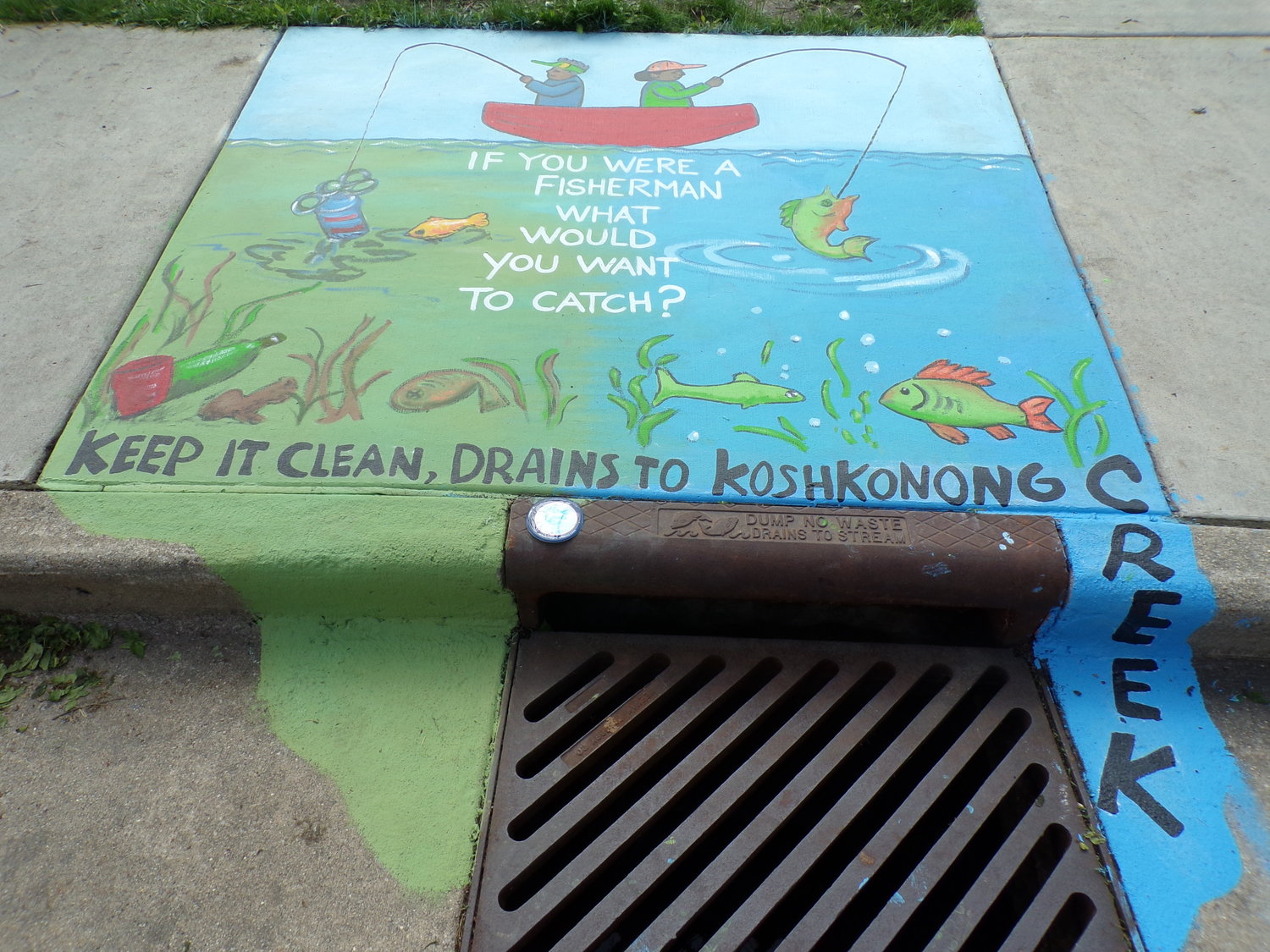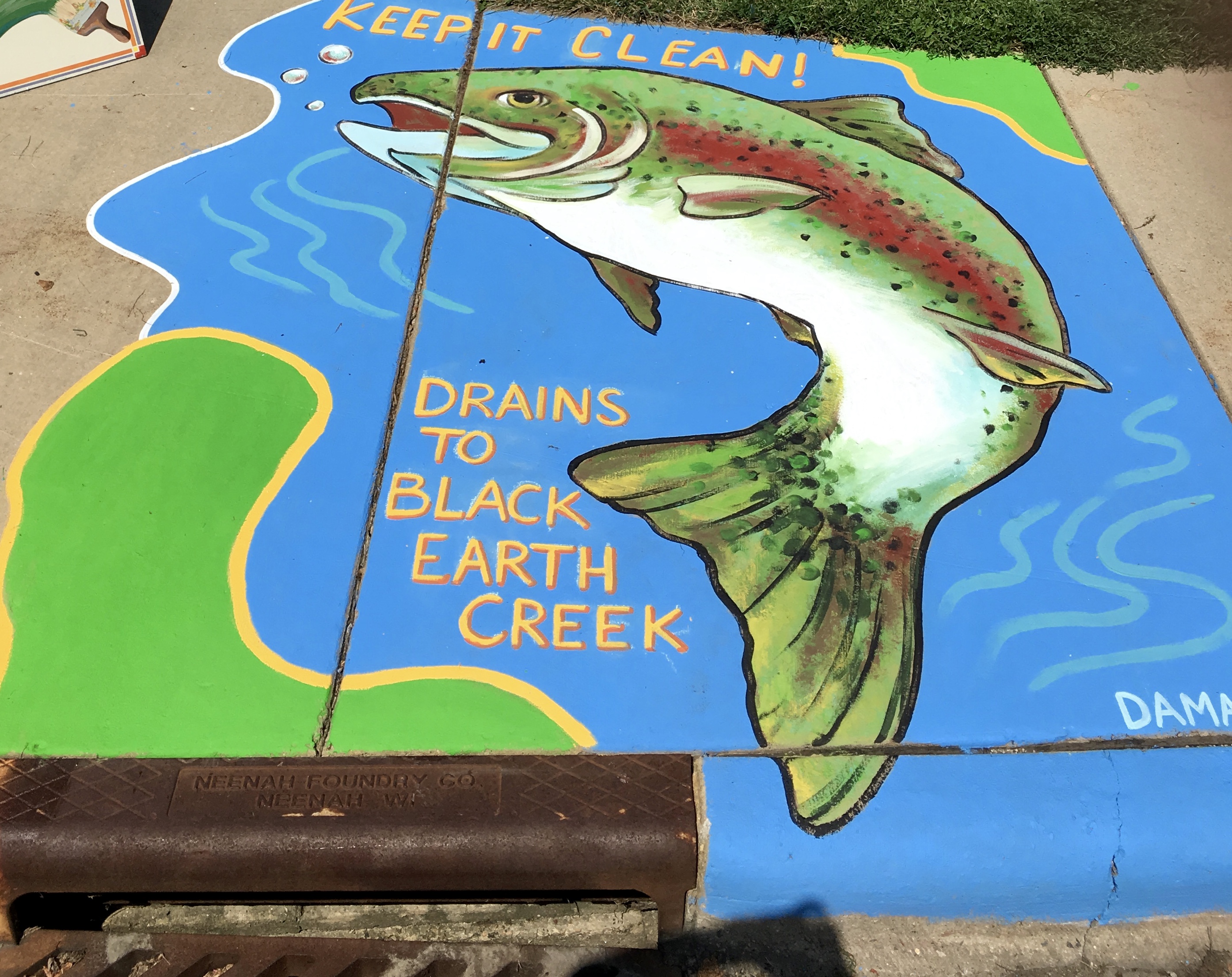 Launched in 2018, the Storm Drain Mural Program uses storm drains as a canvas to educate Dane County residents about stormwater pollution through art. Water that enters a storm sewer often travels to local waterways without being cleaned—carrying trash, soil and other pollutants to our lakes, rivers and streams. The goal of these colorful murals is to capture the attention of those who pass by, help them understand where the stormwater that enters their storm drain flows, and get them thinking about what they can do to keep the drains and our area waters clean.