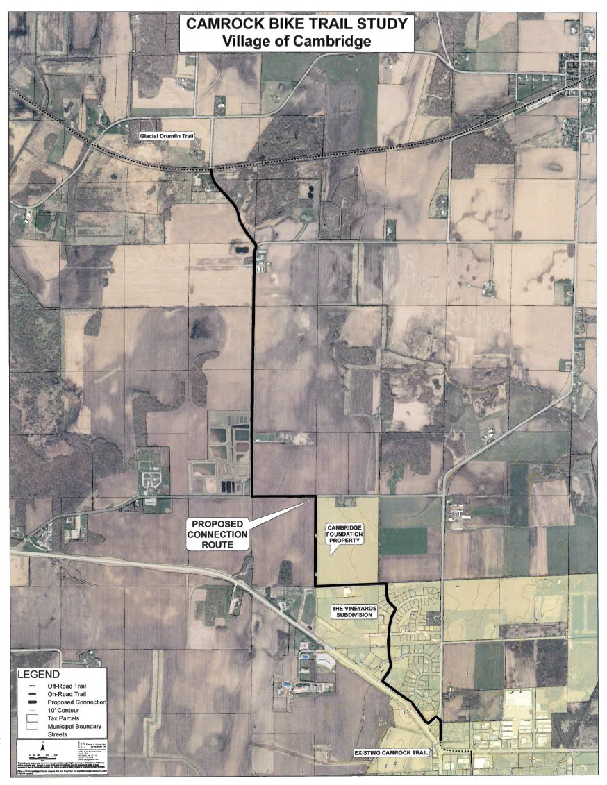 The Village of Cambridge, Dane County Parks, Jefferson County Parks, the Cambridge Community Foundation, and the Wisconsin DNR originally partnered in 2008 to create a plan to connect the Glacial-Drumlin State Trail to the CamRock Trail. A portion of this plan was implemented through a Dane County PARC grant in 2014, which helped extend the route from an existing trailhead at CamRock Park to its terminus north of State Highway 18 near its intersection with State Highway 134.